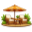 Pavillon en bois avec toit en métal et rideaux en polyester beige