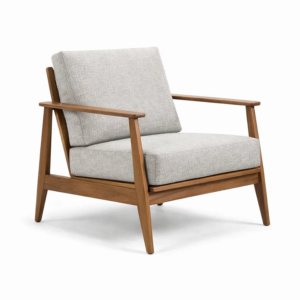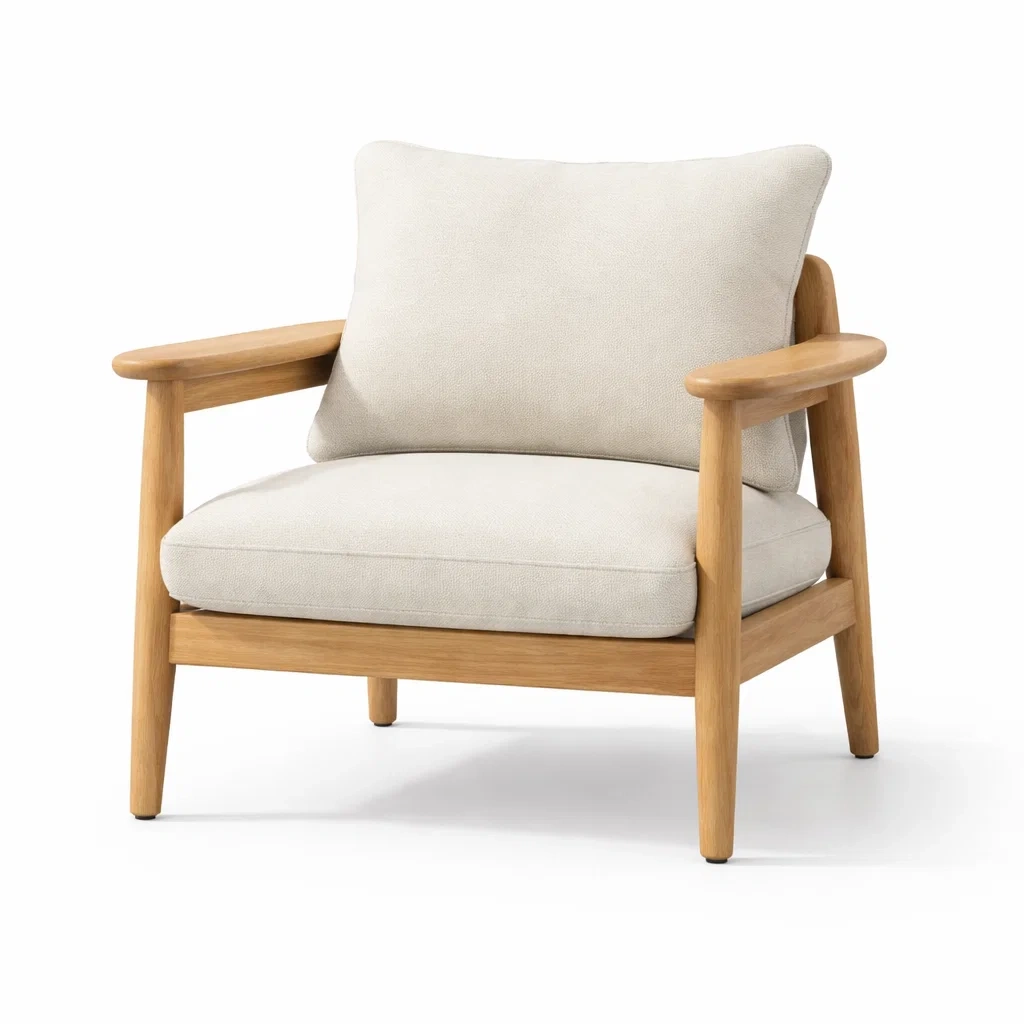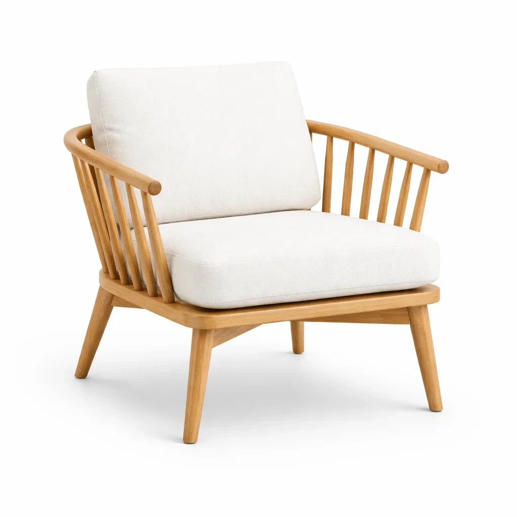 Fauteuil en chêne et rotin avec coussins en polyester beige