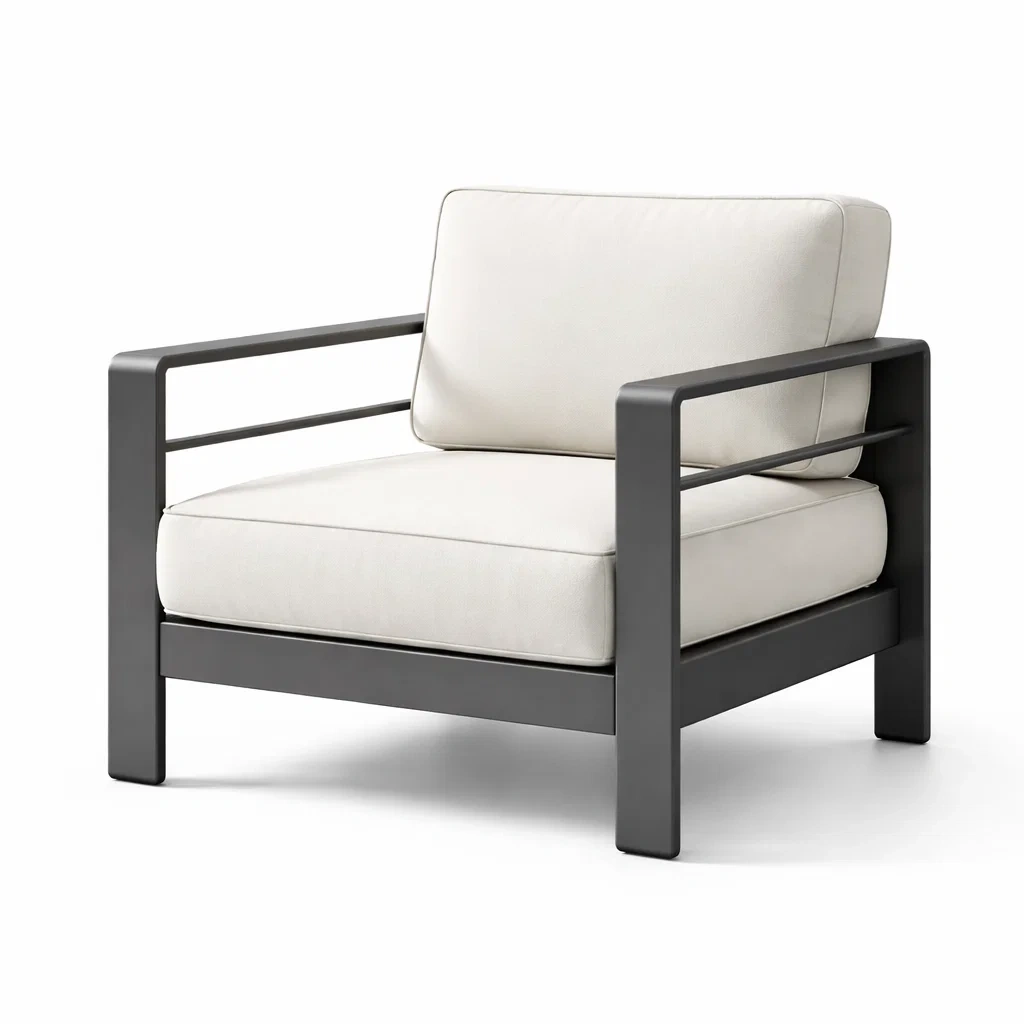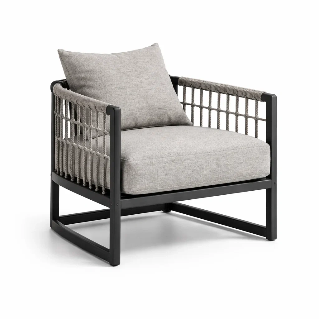 Fauteuil en aluminium avec corde tressée et coussins gris
