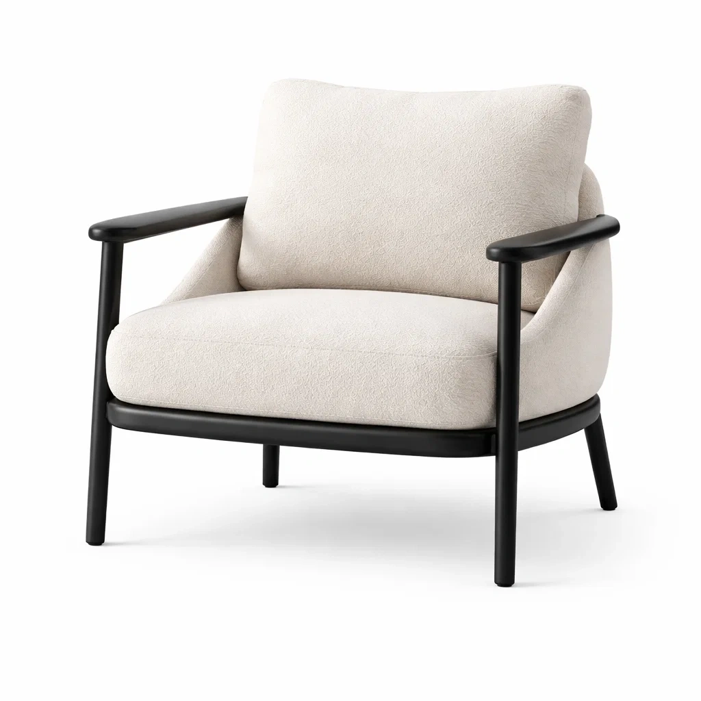 Fauteuil en bois et tissu blanc 80 x 70 x 85 cm