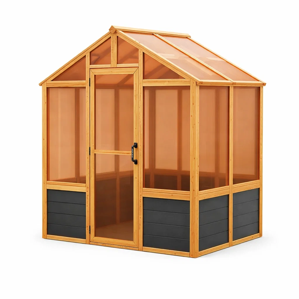 Serre en bois et polycarbonate marron avec porte 200 x 150 x 180 cm