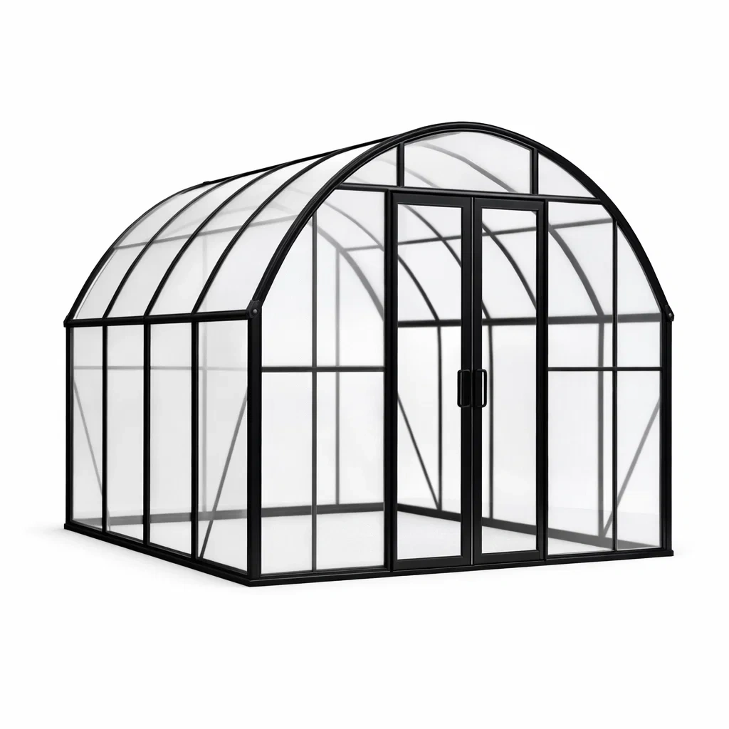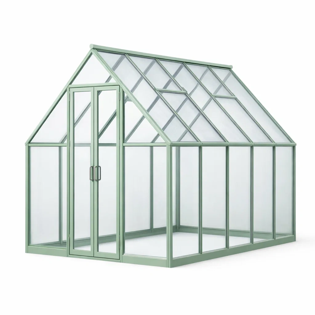 Serre en aluminium avec panneaux en polycarbonate transparent vert