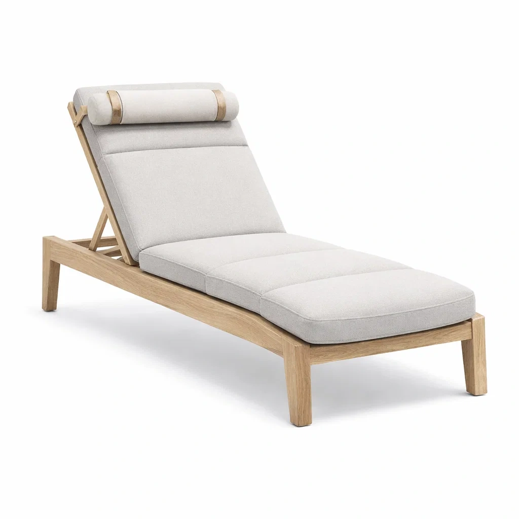 Chaise longue en bois d’acacia avec coussin en polyester beige 200 cm