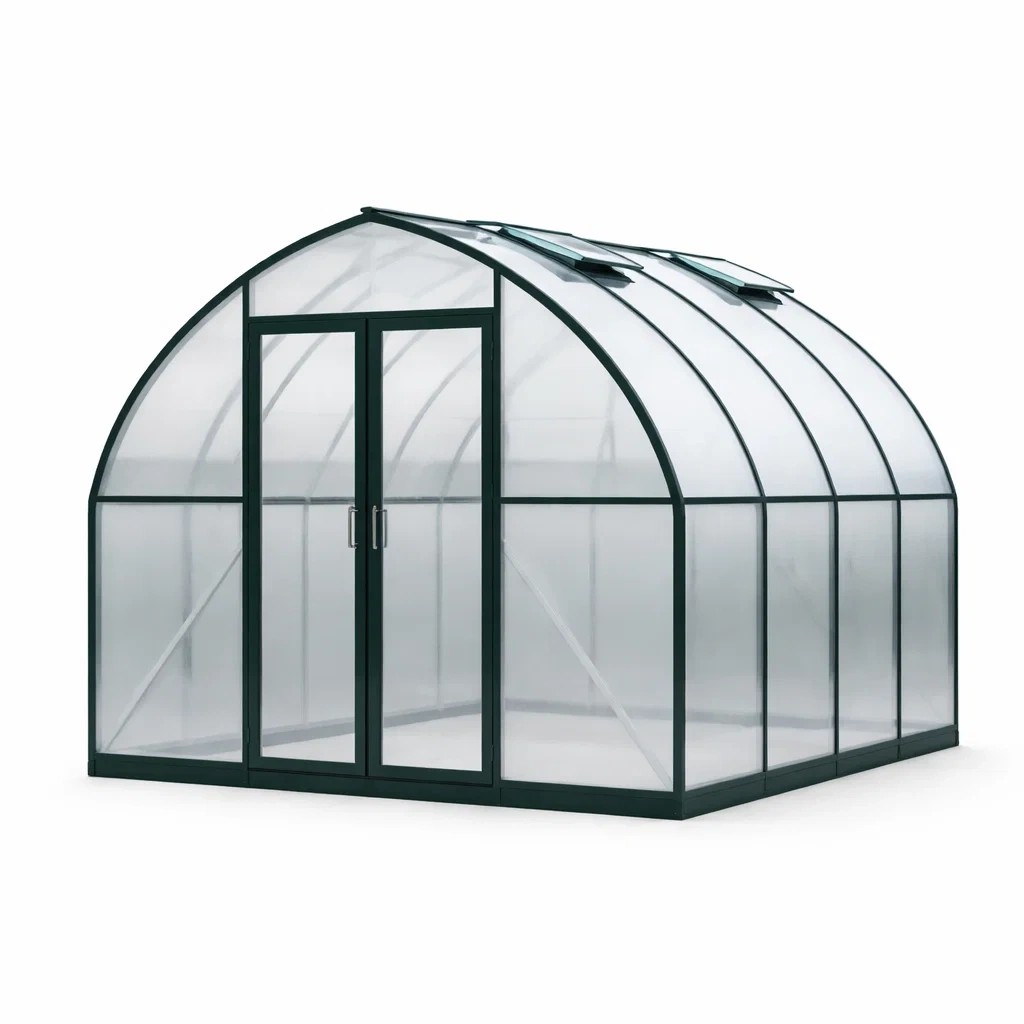 Cette serre tunnel est fabriquée à partir de panneaux en polycarbonate de 4 mm et d'un cadre en aluminium.
